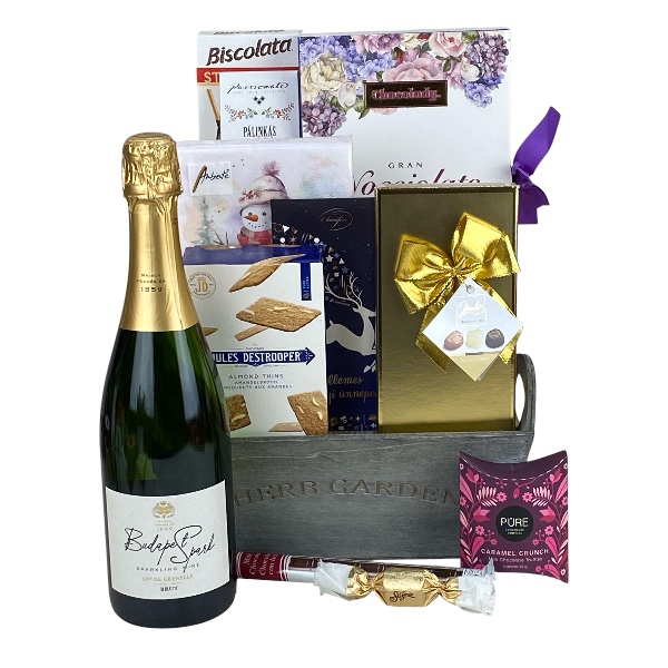 Karácsonyi Budapest Spark (crémant – francia pezsgő) Ajándékkosár – elegáns meglepetés Magyarországra