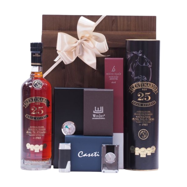 Ez az exkluzív ajándékcsomag nemcsak a prémium rum rajongóinak kedvez, hanem a szivar szerelmeseinek is. A gondosan összeállított fadoboz humidorral, szivarvágóval és szivargyújtóval együtt érkezik, így teljes élményt kínál az igényes fogyasztóknak.