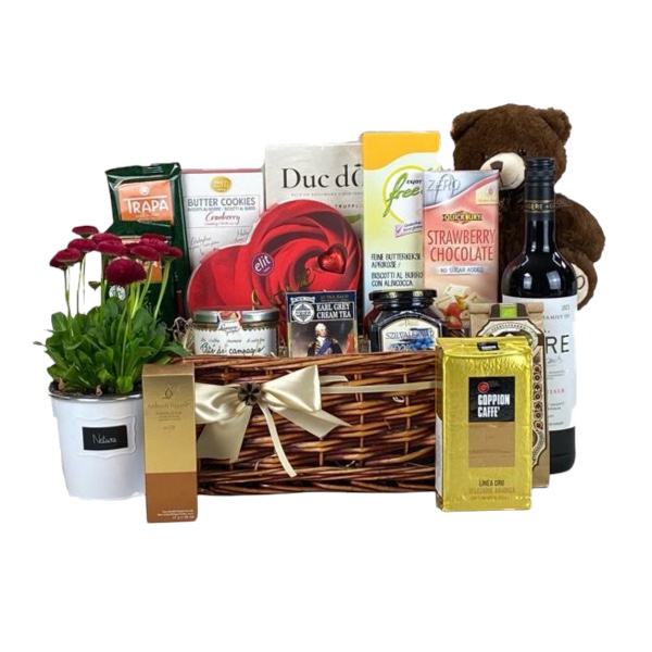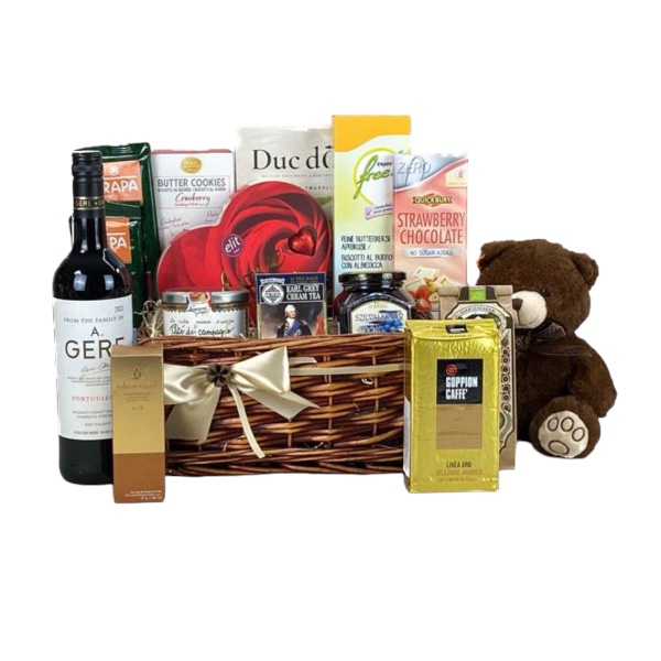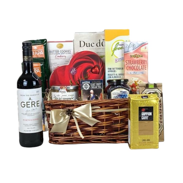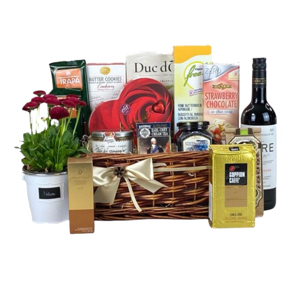 Ebben az ajándékkosárban minden megtalálható, ami egy ínyenc pillanathoz kell – természetesen gluténmentes formában. Találsz benne ízletes bort, válogatott teákat, ropogós gluténmentes kekszeket, gyümölcsös, mentes lekvárt, olasz kávékülönlegességet, prémium csokoládékat és termelői mézet is.