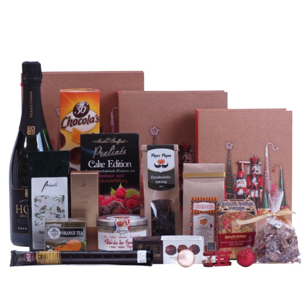 Ebben az elegáns ajándékcsomagban finom spanyol pezsgő, francia húspástétom és ínycsiklandó édességek kaptak helyet, hogy az ünnepi pillanatokat még különlegesebbé tegyék. Akár családtagot, barátot vagy munkatársat szeretnél meglepni, ezzel az ajándékkal garantáltan örömöt okozol.