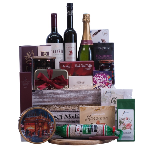 A gazdagon megtöltött kosár minden elemében a kifinomultság és a bőség köszön vissza. Olyan prémium különlegességek kerültek bele, amelyek méltóak egy igazán különleges ajándékhoz: